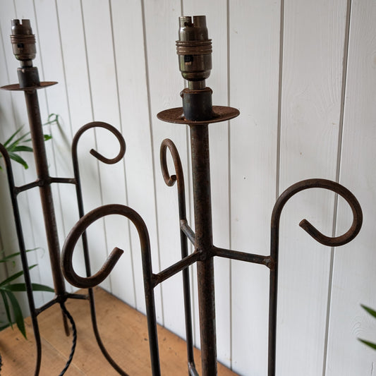 Pair of Large Antique Wrought Iron Lamps