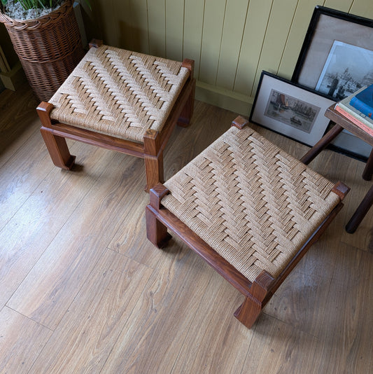 Pair of Mid Century Woven Footstools
