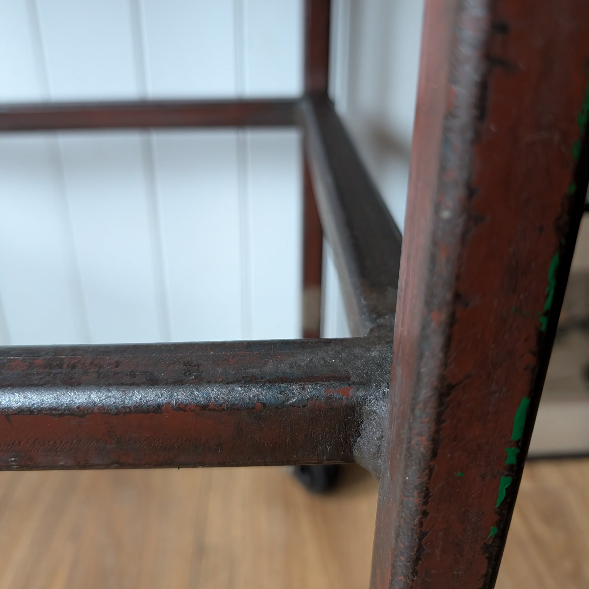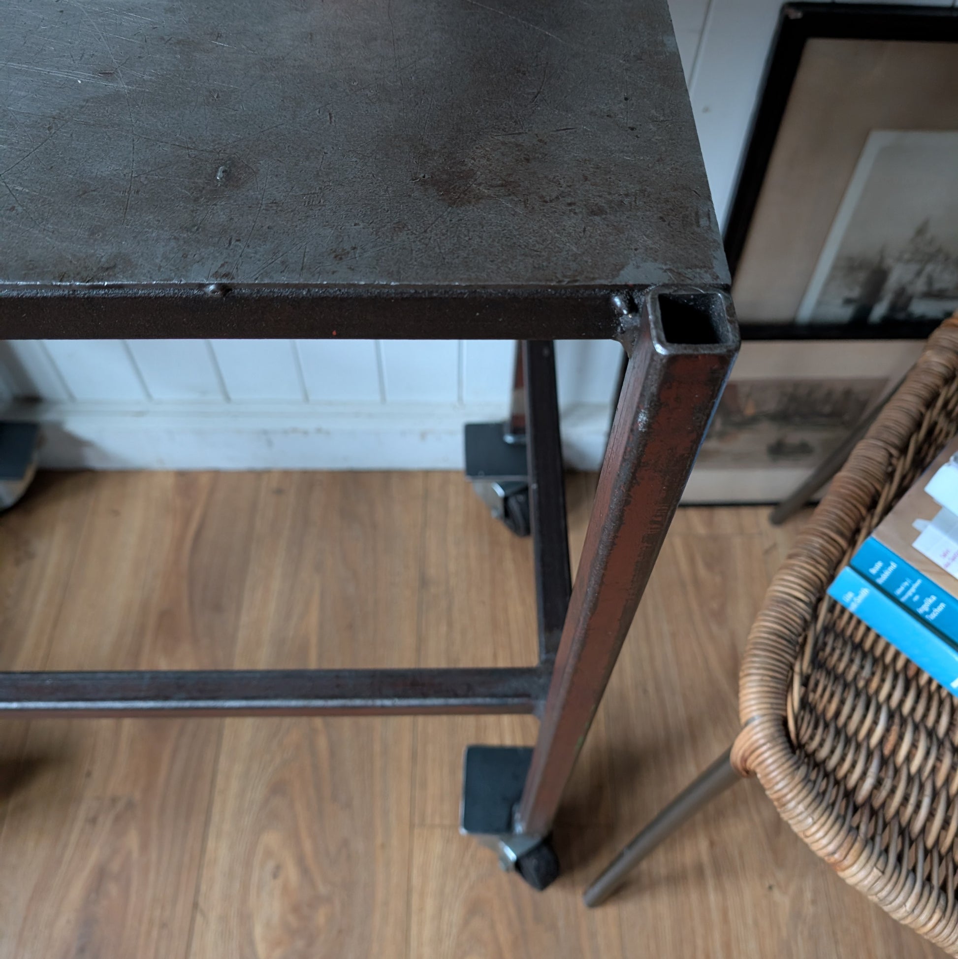 For sale is this very cool, genuine, Vintage Industrial Side Table on Wheels. It's a lovely piece with fantastic genuine patina which has accrued over the last 60 years or so. It has fantastic proportions, nice and robust but not ridiculously heavy so would work comfortably in any home. I've given it a thorough clean and then sealed it with a genourous coat of wax. This is a genuine industrial table not a reproduction so do bare that in mind before purchasing. It would make a great side table, bedside table, lamp table or perhaps alternative to a drinks cart.