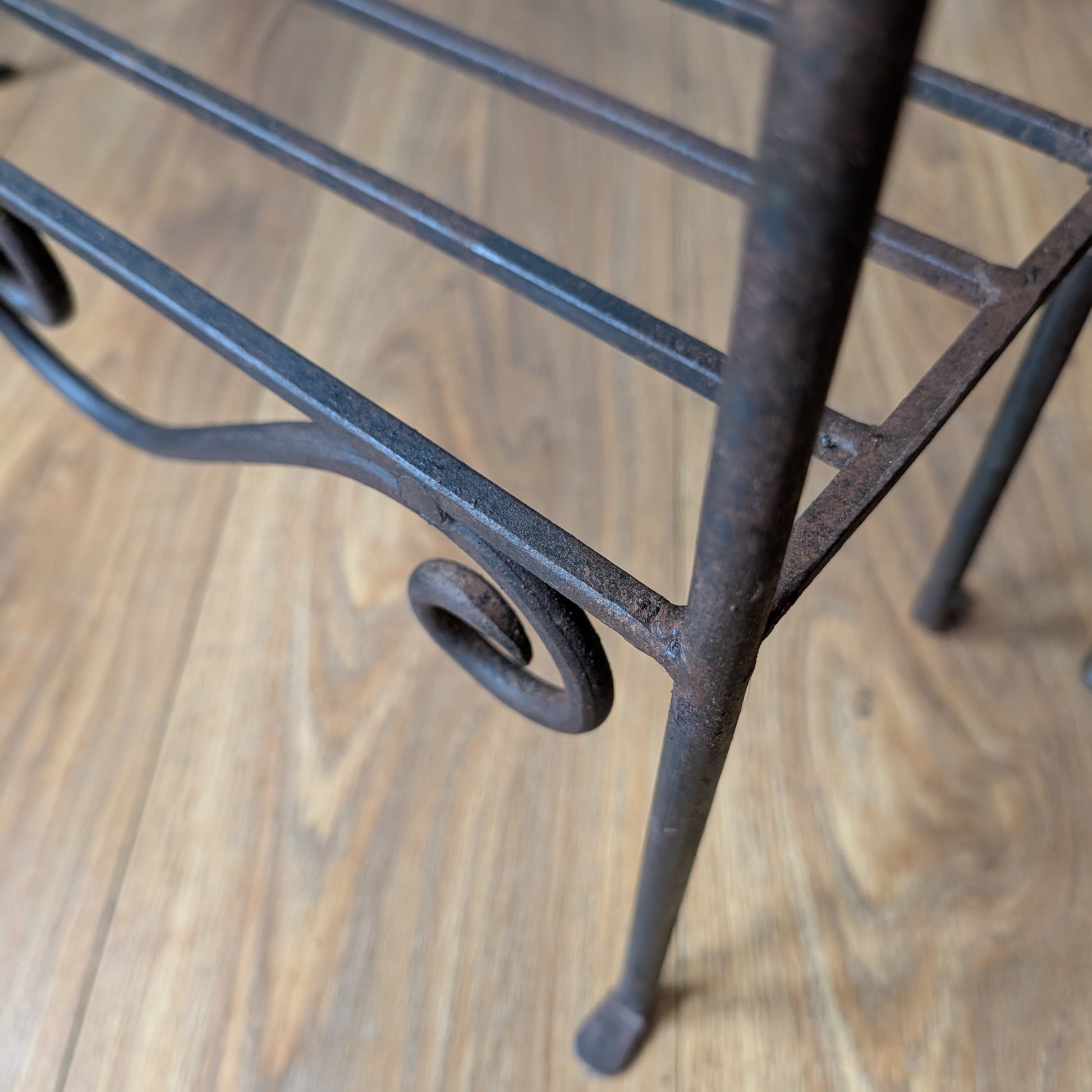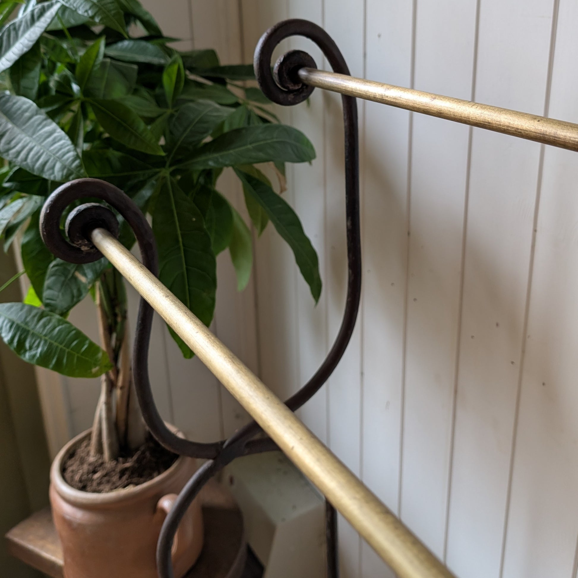 For sale is this absolutely amazing, vintage metal freestanding towel rail with shelves. It's absolutely gorgeous with fantastic genuine patina. It's been cleaned and waxed keeping its character but making it nice and clean. Unusually this one has antique brass towel rails with contrast beautiful against the rustic metal frame.