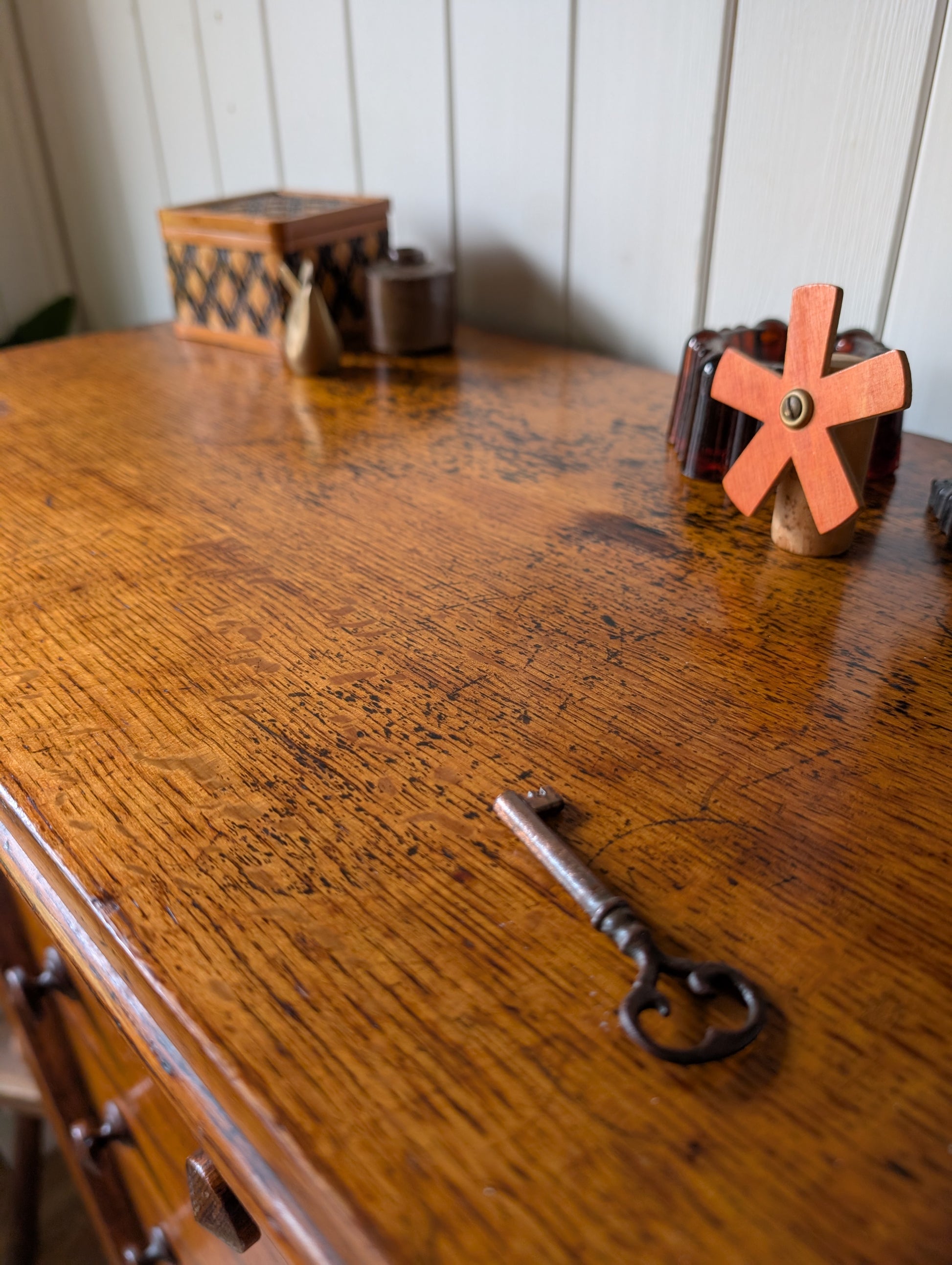 For sale is this very beautiful antique Wellington Chest (tall Antique Chest of Drawers) It's a solid and sturdy piece with the most gorgeous genuine patina, character and charm. These were originally designed for officers to keep their valuables secure, its unique design with the locking bar on the side which is what makes it a genuine Wellington, this one retains its key and works as it should. It has the rich, deep color and character that only comes with age. The classic design with its tall, narrow shape and seven drawers is perfect for a bedroom, home office, or even a hallway. The decorative carved columns and neat wooden knobs show the care that went into making it. All in all a lovely piece which would add instant character to any setting old or new.