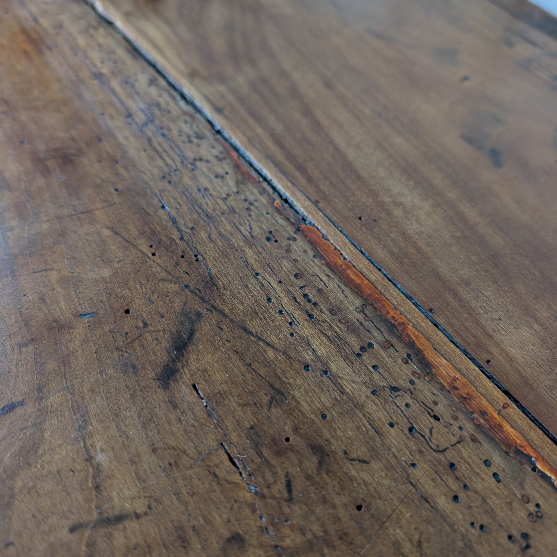 For sale is this very beautiful, very large, rustic French Buffet. It's a really lovely early piece, almost primitive with incredible genuine patina. It has literally tons of bumps, bangs, scratches, dormant wood worm holes, cracks, old filler and so on. That being said it doesn't detract from the piece at all and if anything just adds to its originality, character and charm. It's structurally sound, the drawers run smoothly and the doors open with ease, it also retains its original key. All of the worm holes have been treated as a precaution and the majority filled with wax. It's had a thorough clean and genourous coat of wax giving it a lovely soft sheen. All in all a lovely proper French Antique which would add instant character to any home old or new.