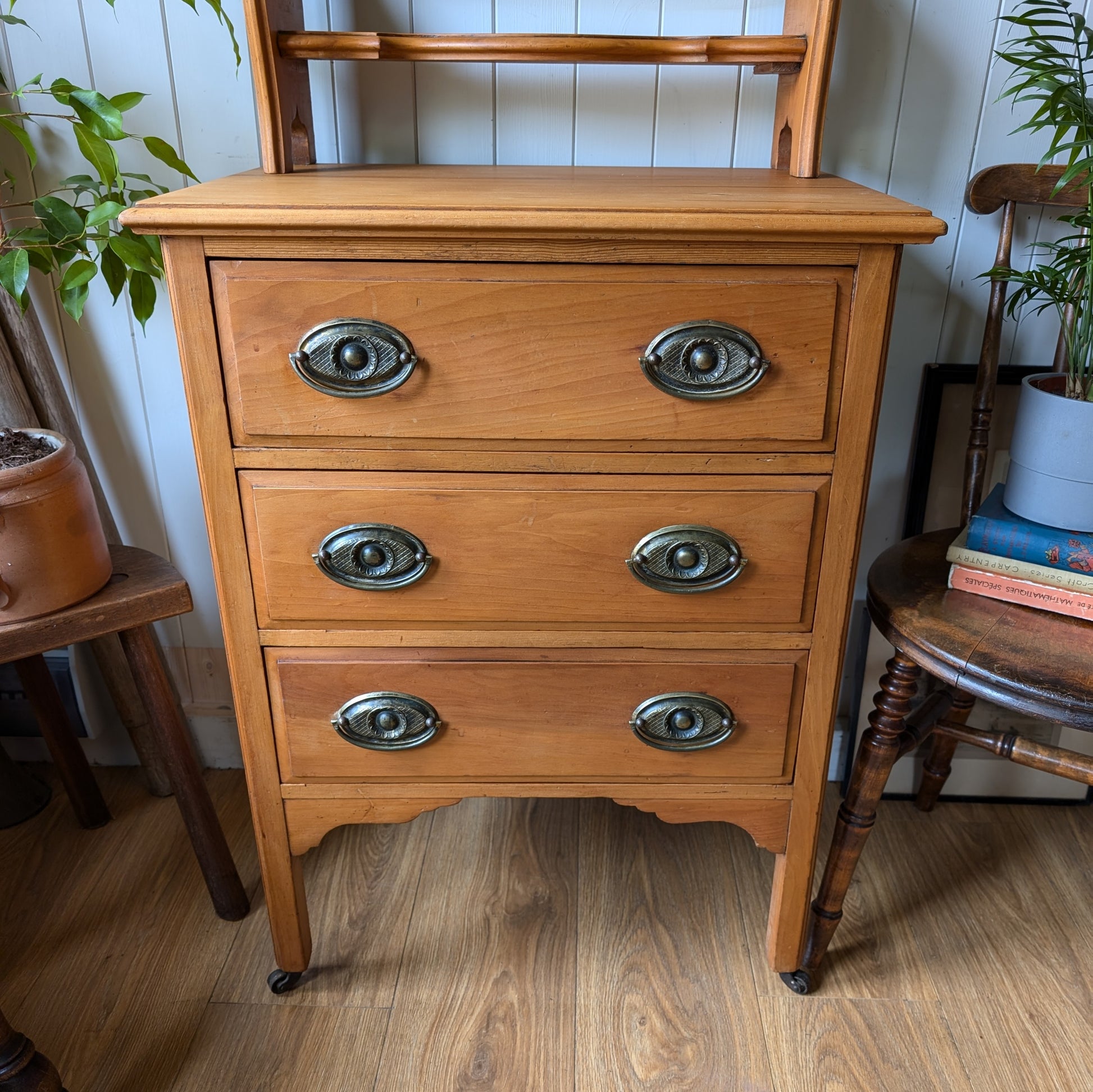 For sale is this very beautiful, small, Edwardian Dressing Table. It's a really beautiful piece with unusual proportions being narrower and shallower than the norm. It's in really nice aged condition with subtle genuine genuine patina and has a particularly nice face. It has a few dormant woodworm holes on the side panels (as pictured) which have been treated as a precaution but they were obviously long gone as the holes were filled with no new signs.