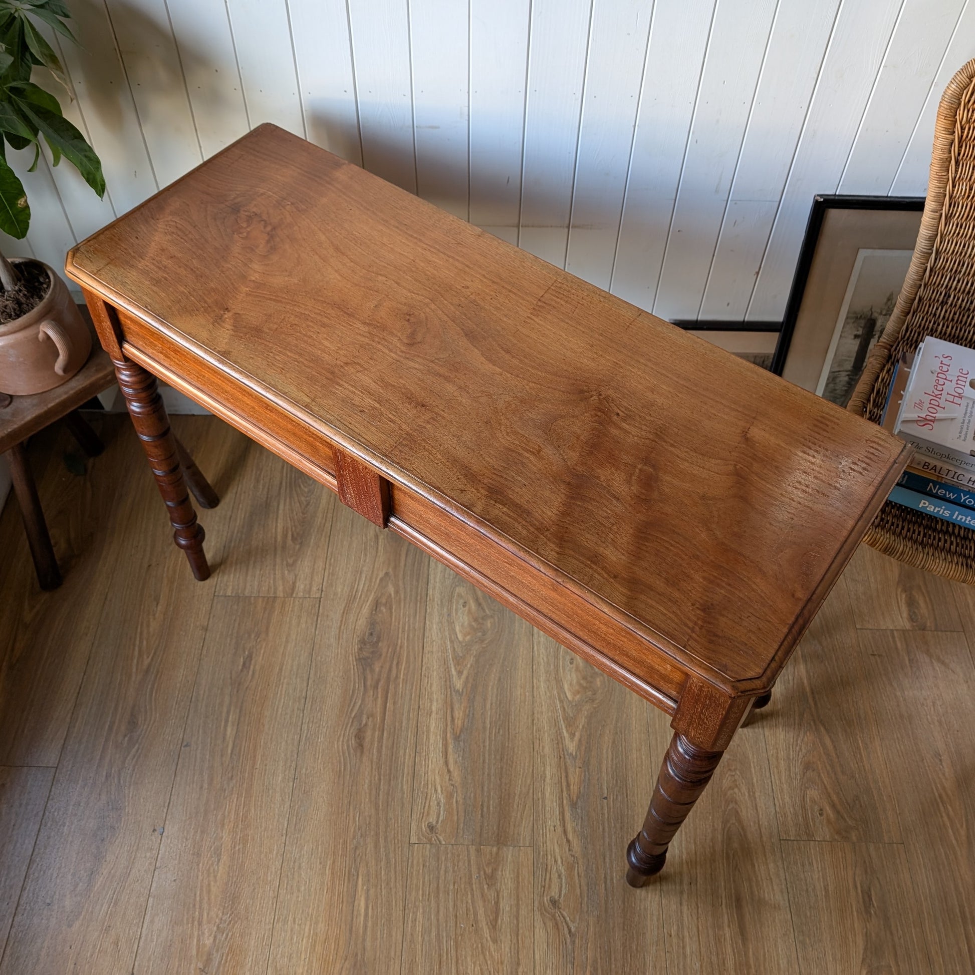 For sale is this very beautiful, Antique Console Table. It's a really beautiful shape and style with with fantastic genuine patina. The finish has softened over time giving it a subtle bleached out faded grandeur feel. This is perfect for a hallway as it's not too deep has angled corners and a secret drawer one end for keys etc. That being said it would work nicely as an antique dressing table or desk. It comes in totally original condition I've just given it a clean and wax.