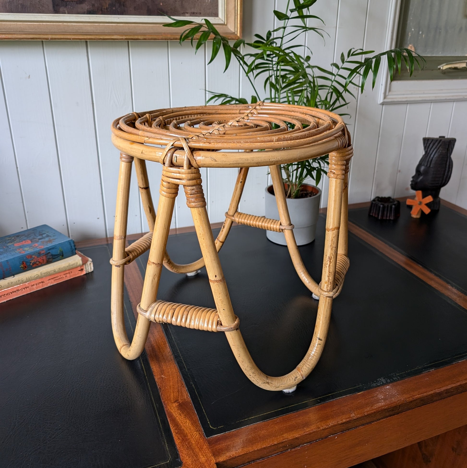 For sale is this very cool little vintage bamboo side table or plant stand. It's in nice aged condition with genuine character and charm. It's a lovely piece which would add character to any home old or new.